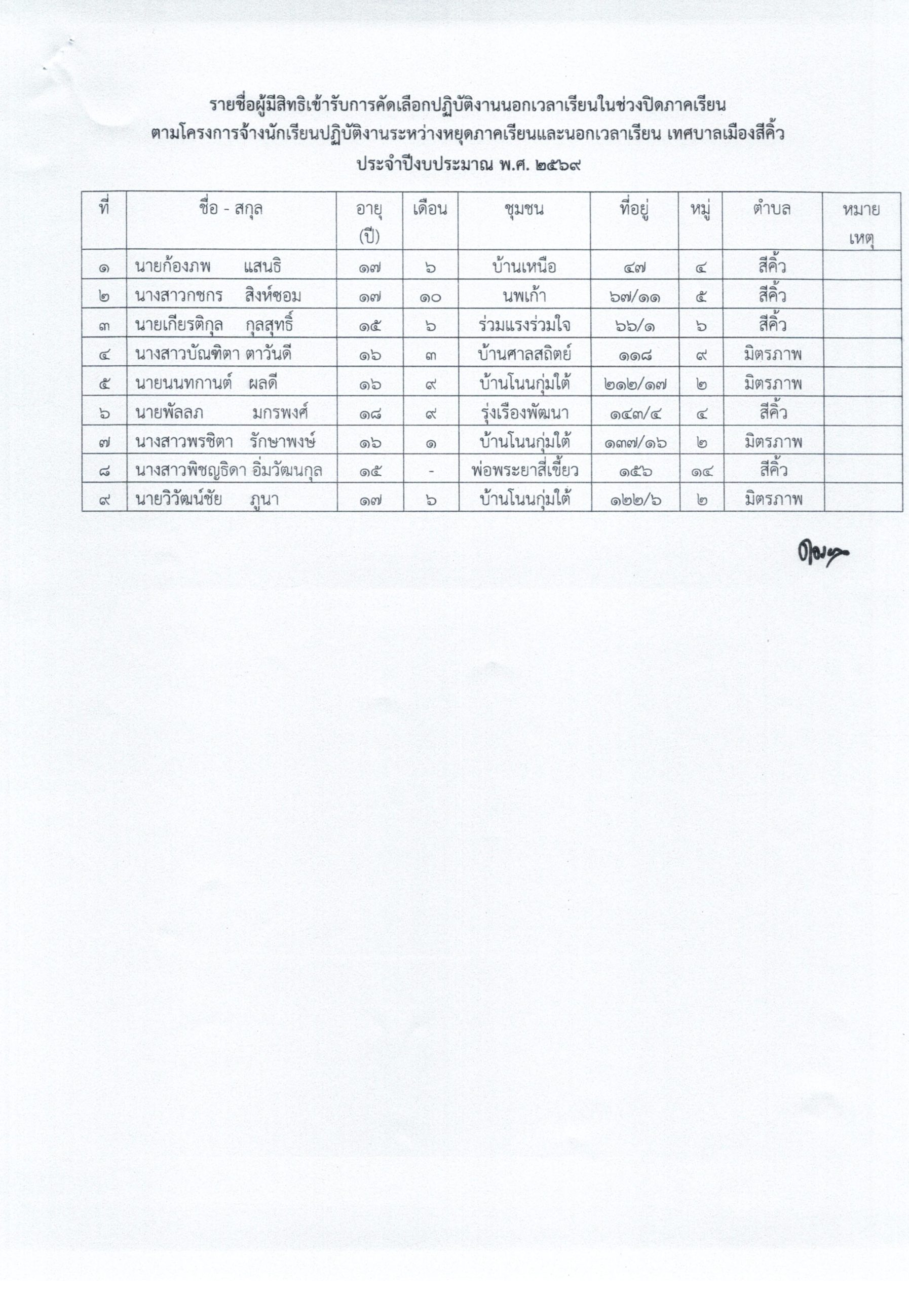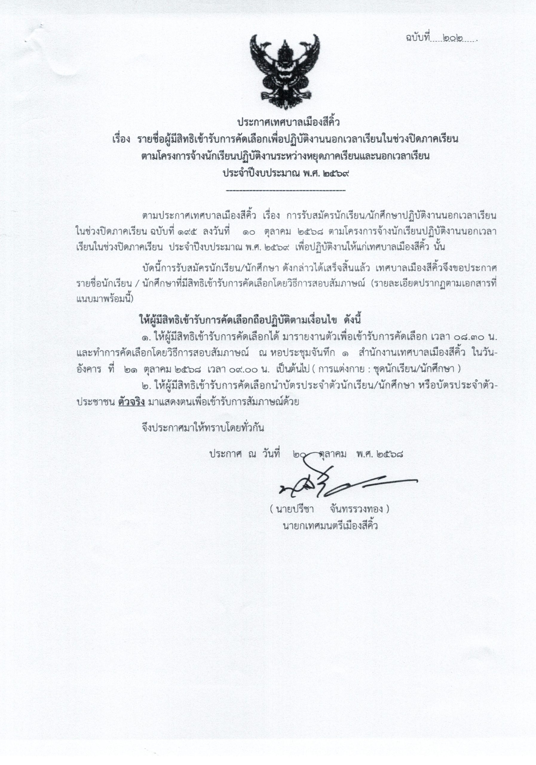 ประกาศรายชื่อผู้มีสิทธิเข้ารับการคัดเลือกเพื่อปฏิบัติงานนอกเวลาเรียนในช่วงปิดภาคเรียน ตามโครงการจ้างนักเรียนปฏิบัติงานระหว่างหยุดภาคเรียนและนอกเวลาเรียน ประจำปีงบประมาณ พ.ศ. 2569 20 ต.ค. 68 แชร์ ดาวน์โหลดเอกสารแนบ : 1 (jpg) 22 (jpg)